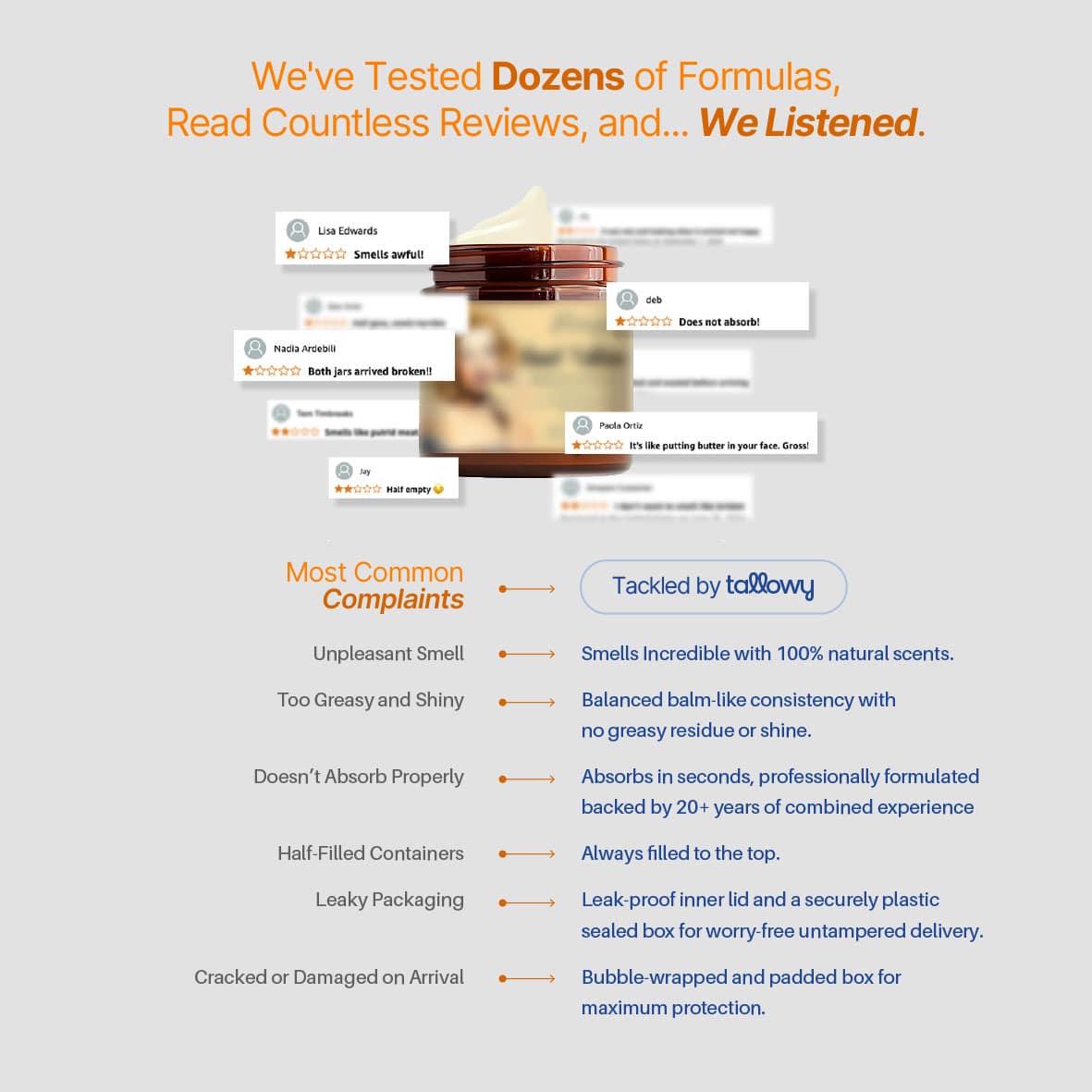 Our Tallow is guaranteed to nourish and hydrate your skin. If you don’t experience softer, smoother, and more radiant skin after using Tallowy, you can return your purchase for a full refund!